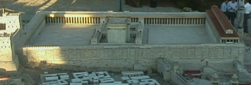 Here's one model of the temple. Keep in mind that this square represents 42 acres. And I believe that this massive public meeting area is the "house" portion of the complex. Over here is the temple proper, and on the south side is the house, sometimes called Herod's Basilica and sometimes called Solomon's porch. It is three storied, and the top platform would have been a perfect spot for Peter to come out of one of the rooms way on the top and to address the crowds. Some people actually believe that Peter addressed the crowds from the house of Avtinas (which is right here). And that theory is definitely a possibility.