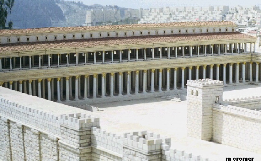 So let me sum up using this picture. In Acts 2, when the people rush together after hearing the sound of the Holy Spirit, I believe they were rushing over to get a closer look at the Southern Portico. Notice that if they were in an upper room, almost everyone in the temple would be able to see them no matter what court they were in. Notice that huge amounts of people could stand on the walls up here (that had high fences to keep you from falling off). So people on all four walls would have been able to be witnesses. People in the court of the Gentiles would have quick access to Peter's speech. And even people in the inner courts would have been able to see and hear him. It was a perfect lecturn to be able to preach to massive numbers of people. As I mentioned, the temple could easily hold over 400,000 people. In fact, at times, there were over 1 million pilgrims in the temple.
