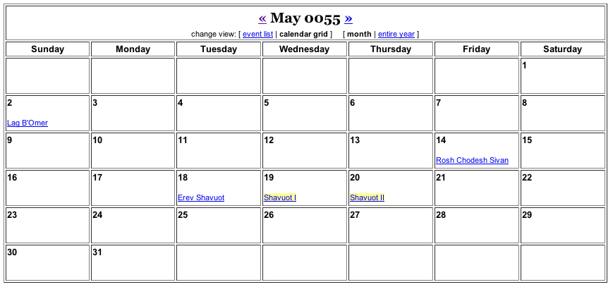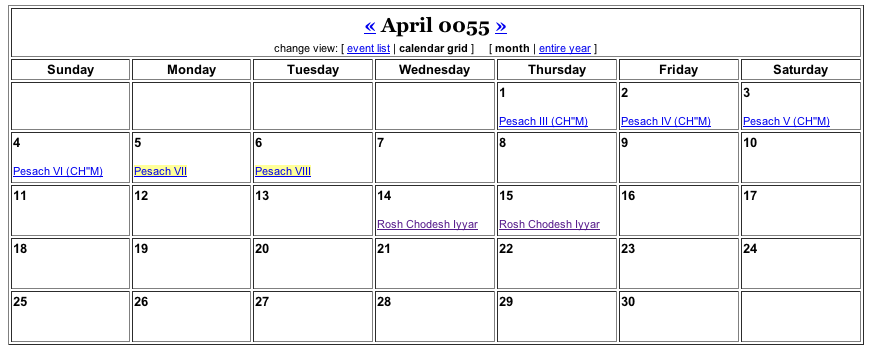 We can see another hint of the way Paul honored the first-day Sabbath, in the way in which he travelled. Dr. Francis Nigel Lee goes through the whole book of Acts to show that the early church honored the Lord's Day. I won't go into all the specifics. In fact, the chronology offered by different scholars was so difficult to present in written text that I have included a calendar of April and May from the year 55 AD. There are eight Sundays documented in chapters 20 and 21. On page 749 of his commentary, Simon Kistemaker outlines the relevant facts. But Francis Nigel Lee does even more detailed work. It does make a difference what year you are working in. Lee thinks this takes place in 56 AD, and he has Paul resting every Sunday. I think this takes place in 55 AD and I see Paul traveling on one Sunday. It doesn't matter who is right, because either year you use you can see Paul deliberately traveling on Saturday when he did not need to. It's almost like is making a point.