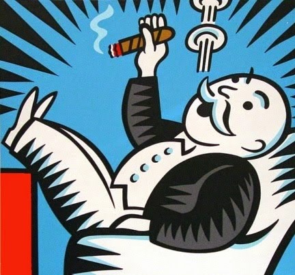 Just one more picture. It’s yet another banker, and this one a bit more like the first monopoly man, but still different enough that it makes you wonder why you recognize it as a banker. But you do. It’s part of our culture. But it’s a different connotation. He is enjoying life and has made it to the top. The previous pig shaped banker has something evil and selfish about him. People think that he has made it at your expense. So, there is the same denotation, but a different connotation.