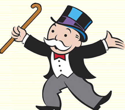 First of all, what game is this from? Monopoly. And what profession does this guy represent? He is the banker.